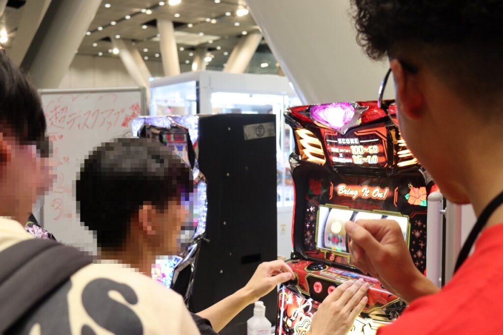 パチスロでは有線イヤホン対応の『スマスロ ゴッドイーター リザレクション』やBluetoothイヤホン対応の『スマスロ北斗の拳』が試打可能となっていました。